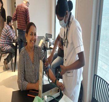 Medical checkup camp held for the employees of Kanakia Silicon Valley, Powai by the staff of Dr L H Hiranandani Hospital. Date : 1st July 2022
