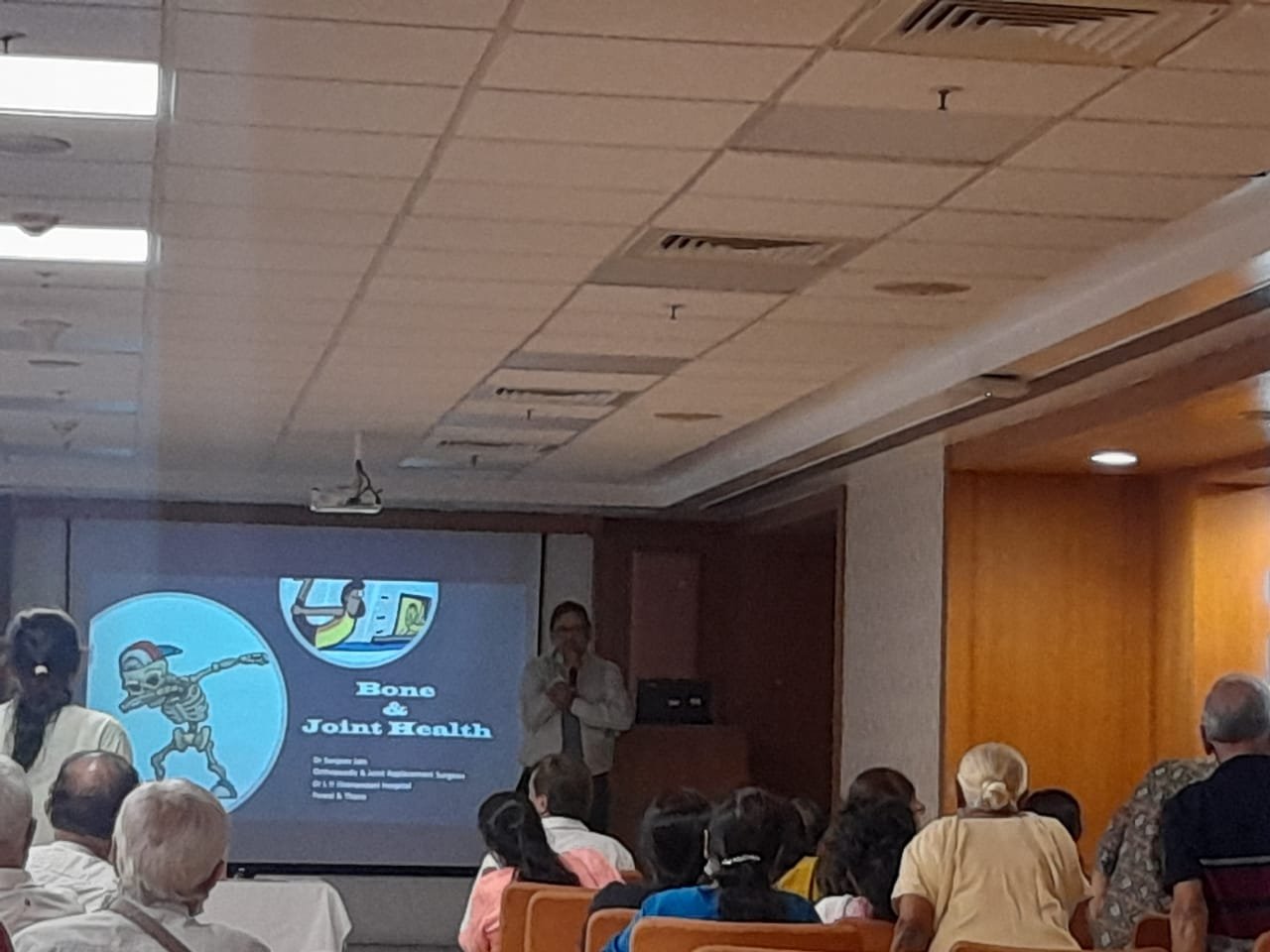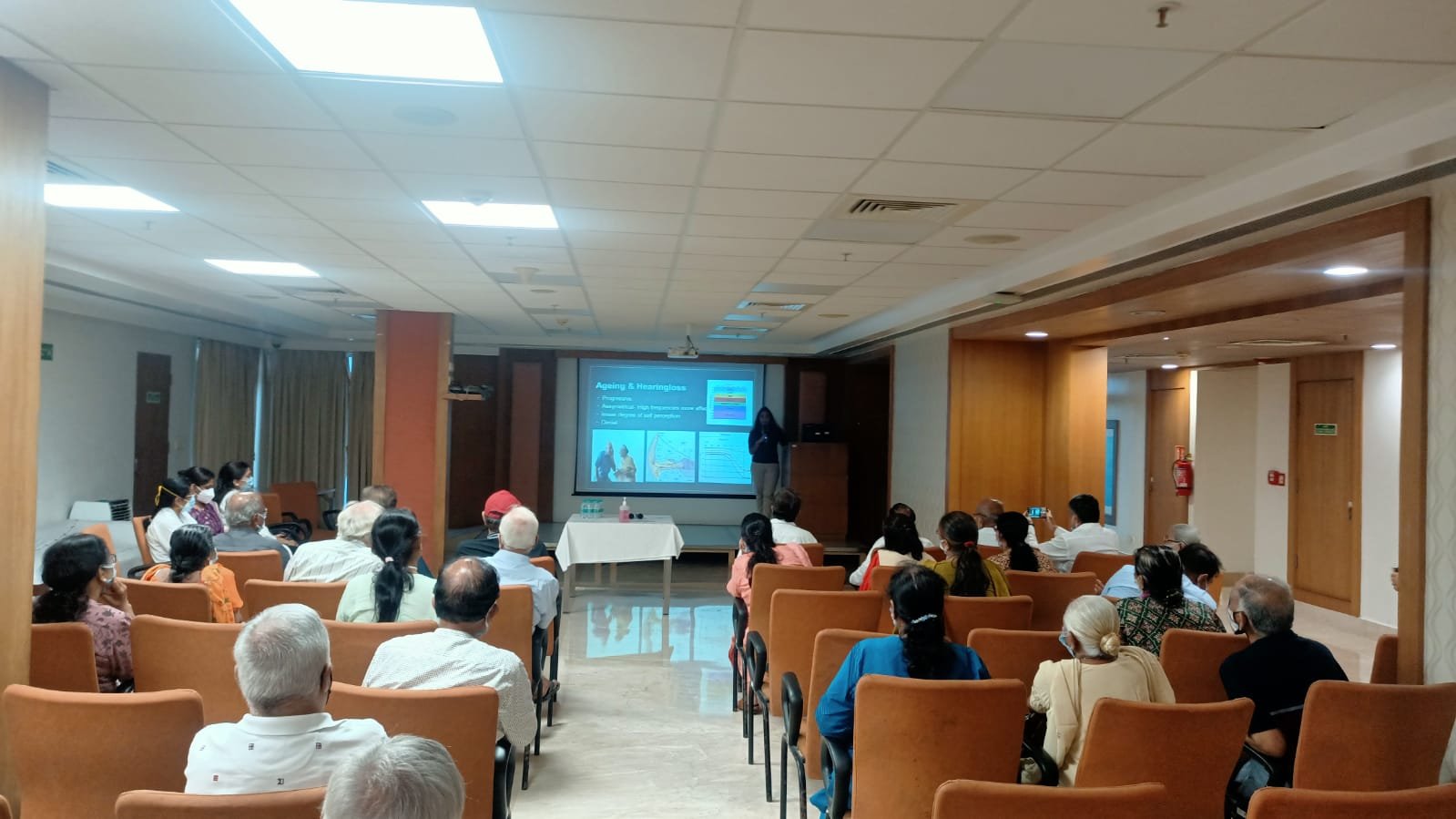 Talk on Hearing Loss & Mental Health in the Elderly by Dr Kashmira Chavan - ENT Surgeon, Recent Advances In Eye care by Dr A Sanjana - Ophthalmology, Eye Care In The Elderly by Dr Pavitra Bhat - Ophthalmology, Bone & Joint Health by Dr Sanjeev Jain - Orthopaedic and Joint Replacement Surgeon, The Need & Importance Of A Comprehensive Elder Care Clinic by Dr Priyanka Navelkar - General Medicine & Audiological Management Of Hearing Loss In Elderly by Dr Komal Renuke - Audiologist & Speech Therapist Voice Therapist.