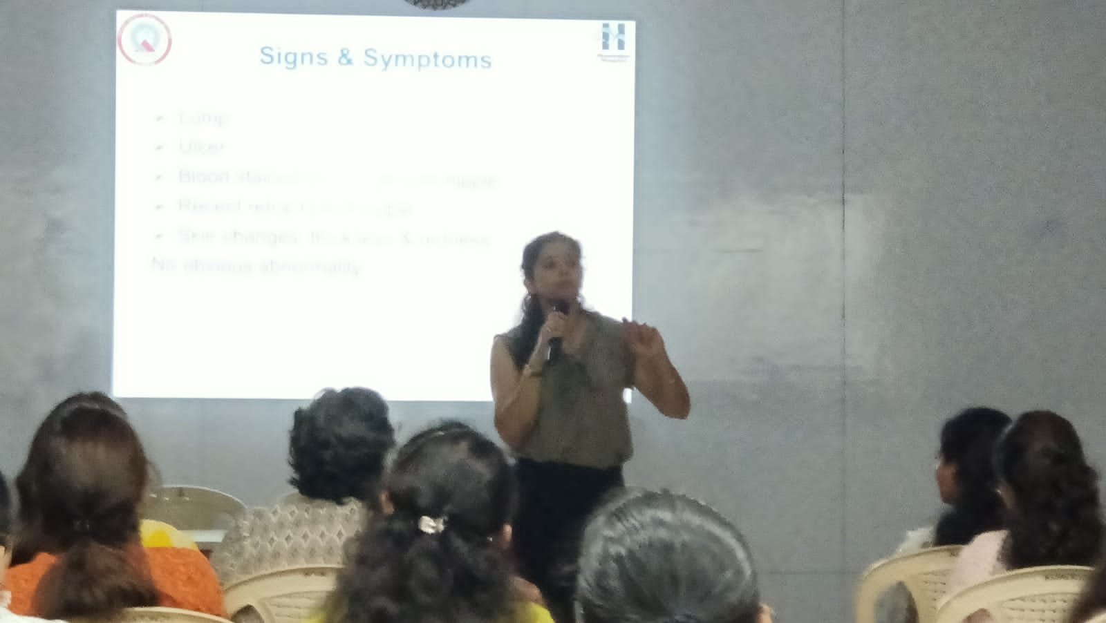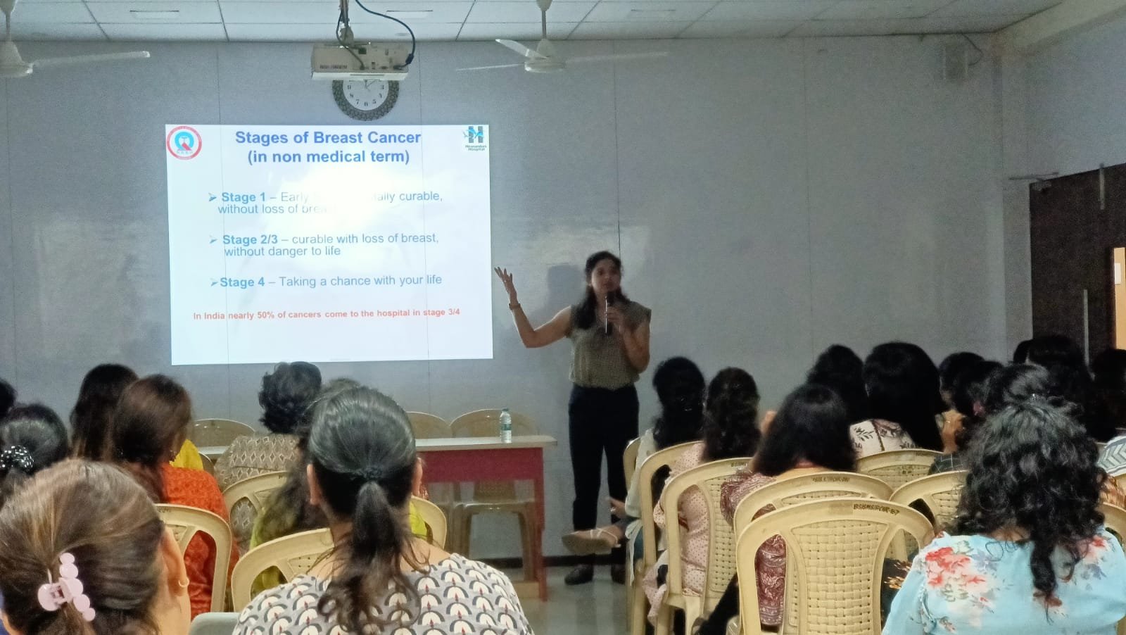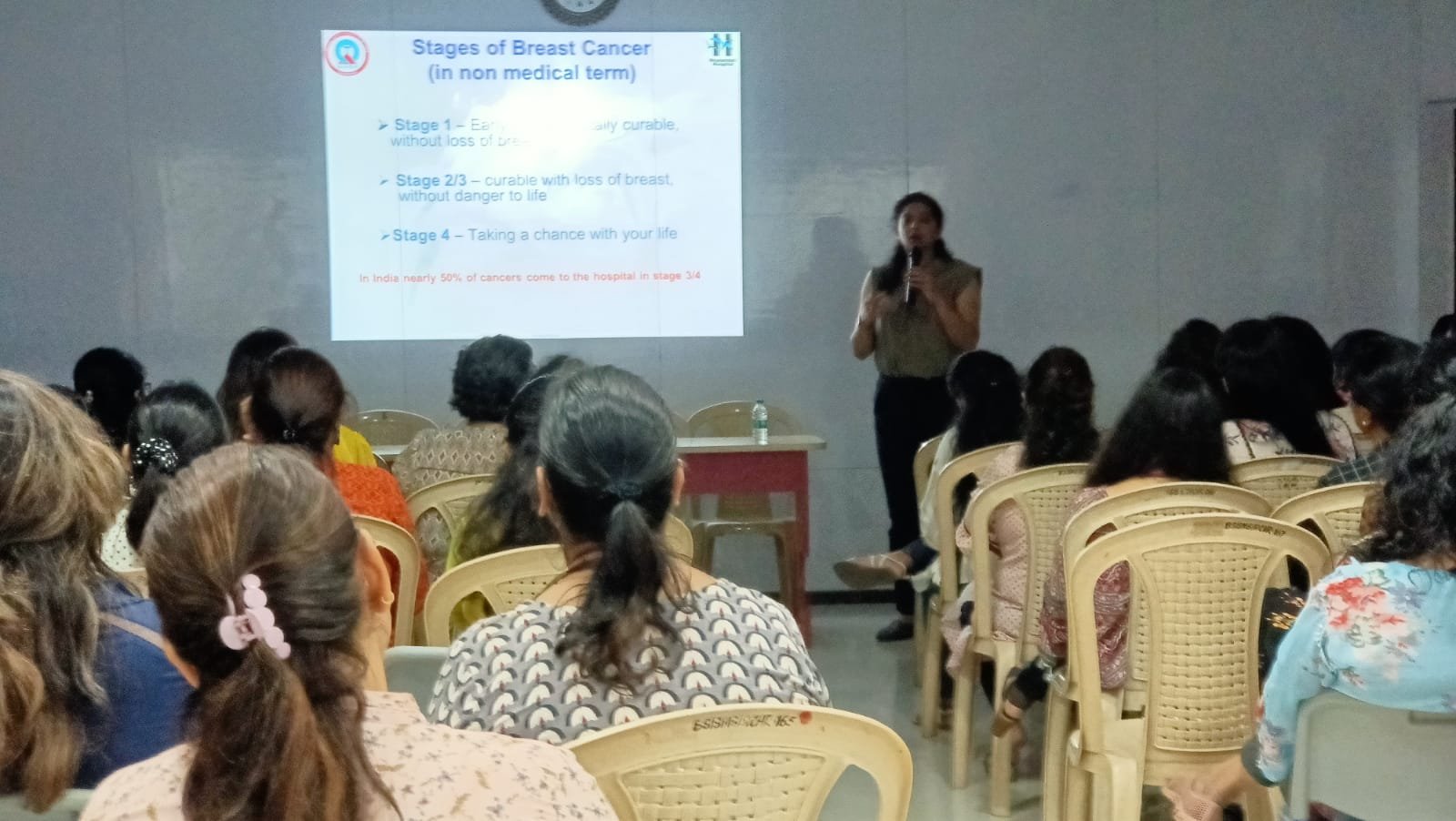 Dr Namita Pandey (Breast onco surgeon) delivered a health talk for the teachers of S M Shetty School to assess the knowledge and perception of breast cancer screening and to improve the level of related knowledge amongst the S M Shetty School Teachers by an open question and answer forum. Pre and post talk surveys were conducted to gauge knowledge, attitudes, beliefs and misconceptions towards breast cancer.